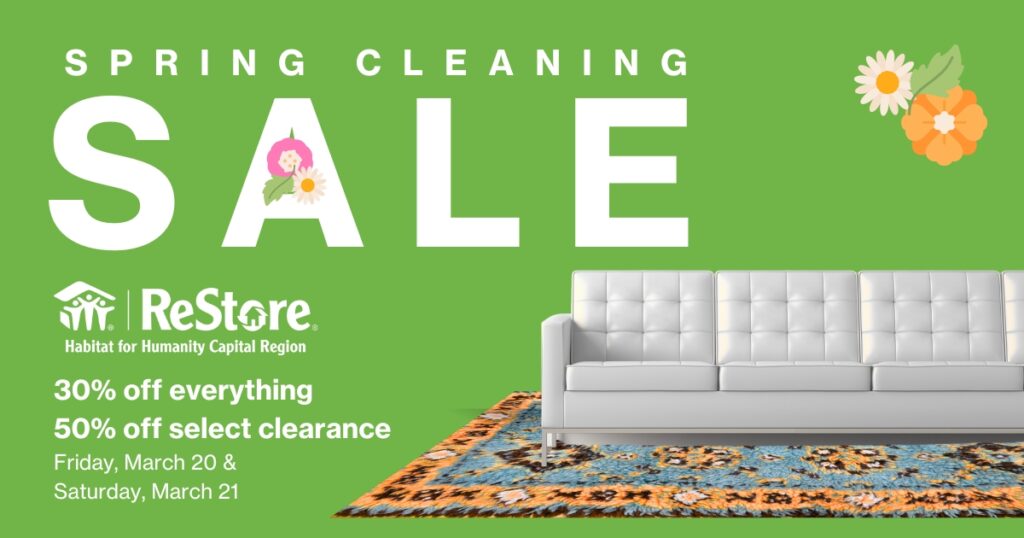 Shop Sustainably This Spring! This is the season for renewal: Taking out the old and bringing in the new. Fortunately, Habitat Capital Region can help you with both! On Friday, March 20, and Saturday, March 21, all of our ReStore locations will have incredible deals as a part of our quarterly sales. Bring a gently-used…
