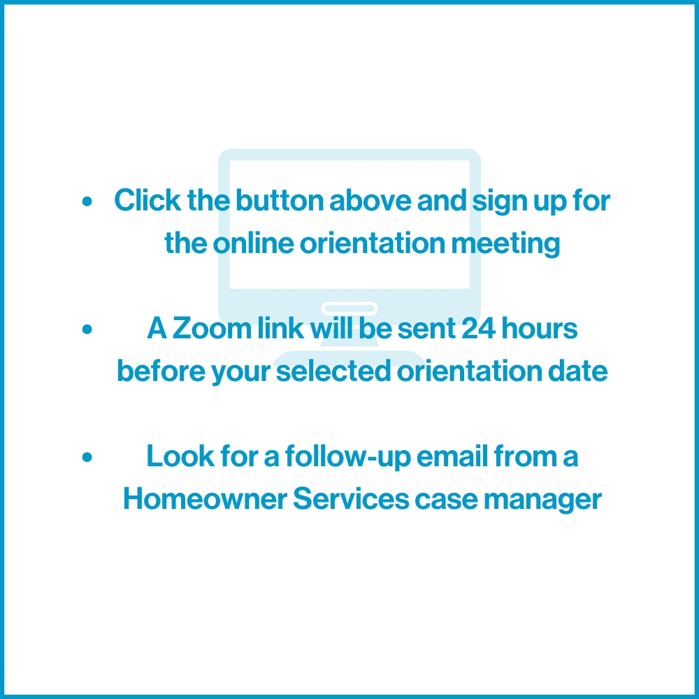 Attend an information session with our Homeowner Services team to learn more about the Homeownership Program and to decide if it is right for you.